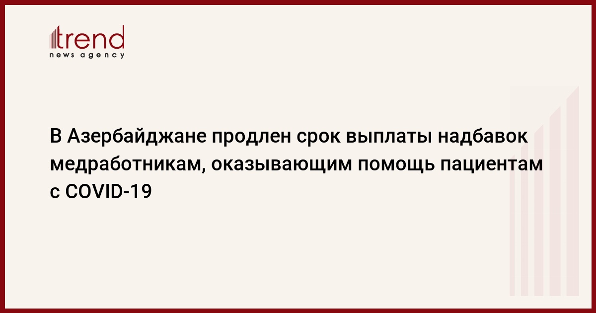 БАКУ /Trend/ - Продлен срок выплаты надбавок к заработной плате медицинских работников, оказывающих амбулаторно - поликлиническую помощь больным COVID-19 в специальных амбулаторных медицинских пунктах, созданных при Главном управлении здравоохранения Баку.