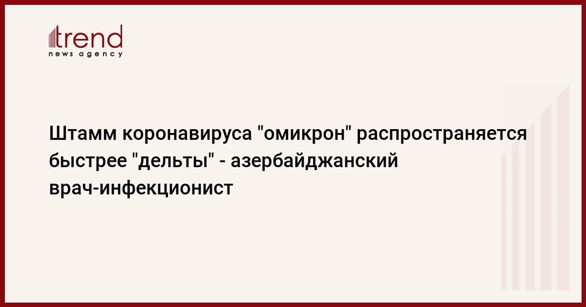 БАКУ /Trend/ - Штамм коронавируса "омикрон" распространяется быстрее, чем другая разновидность этого вируса - "дельта". Инкубационный период у "омикрона" короче, чем у штамма "дельта", и составляет 72 часа, однако симптоматика у него более умеренная.
