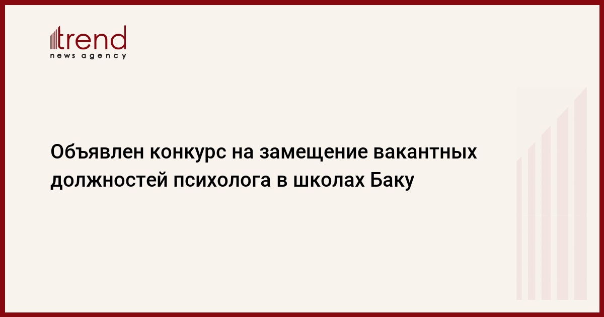 БАКУ /Trend/ - Управление образования Баку объявляет конкурс на замещение вакантных должностей психолога в подведомственных ему общеобразовательных заведениях.