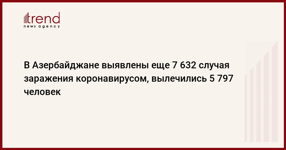 БАКУ /Trend/ - В Азербайджане за последние сутки выявлены 7 632 случая заражения коронавирусом, 5 797 человек вылечились, 24 - скончались, передает в четверг Trend со ссылкой на Оперативный штаб при Кабмине.