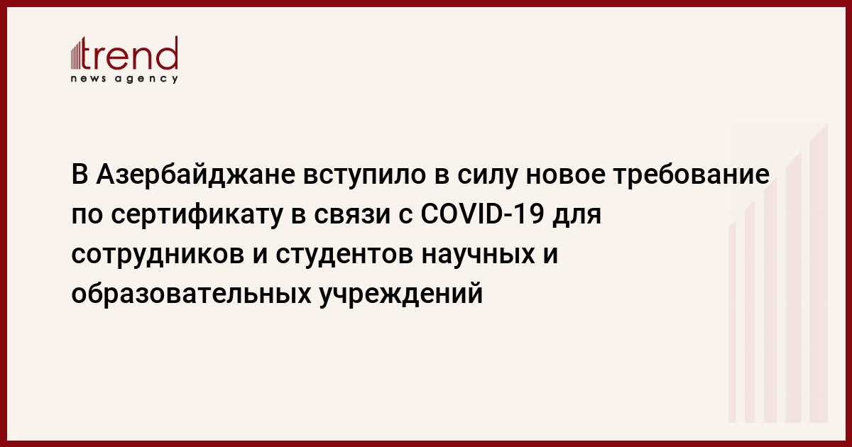 БАКУ /Trend/ - С сегодняшнего дня вступает в силу новое требование по сертификатам в связи с COVID-19 для сотрудников и студентов всех научных и образовательных учреждений.