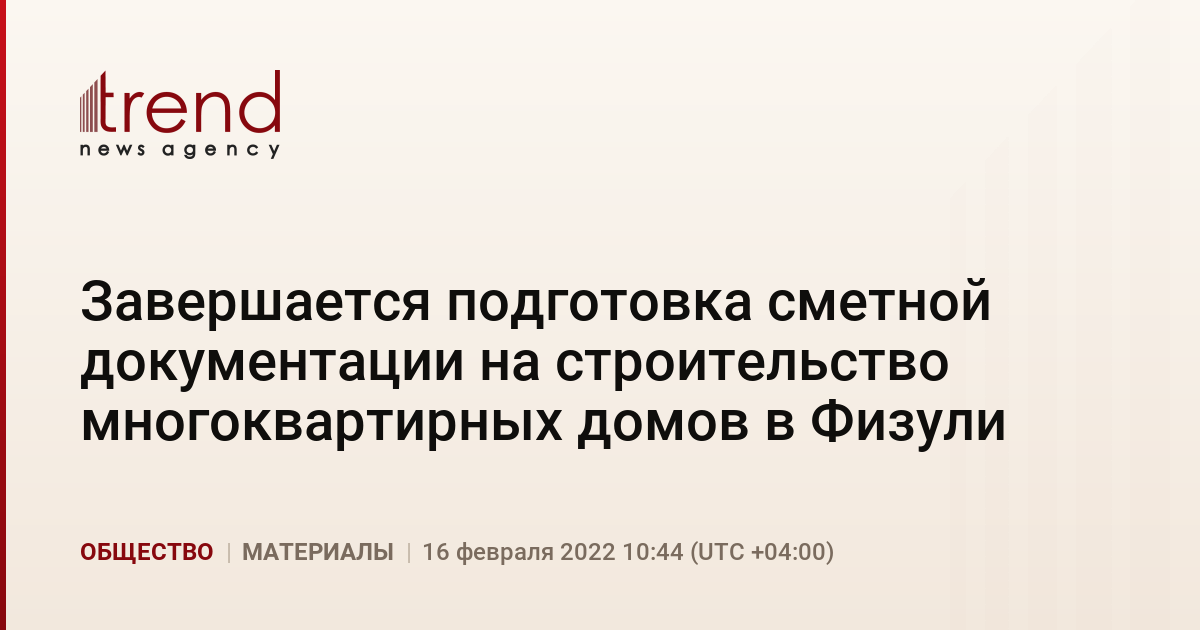 БАКУ /Trend/ - Ведется подготовка проектно-сметной документации для строительства многоквартирных домов в Физулинском районе, которая будет завершена в ближайшее время, сообщили Trend в Государственном агентстве жилищного строительства.
