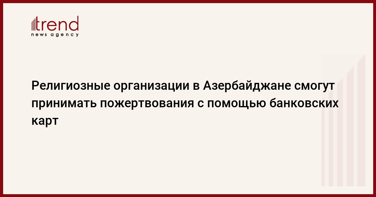 БАКУ /Trend/ - Религиозные организации в Азербайджане смогут принимать пожертвования посредством банковских карт, электронных платежных систем.