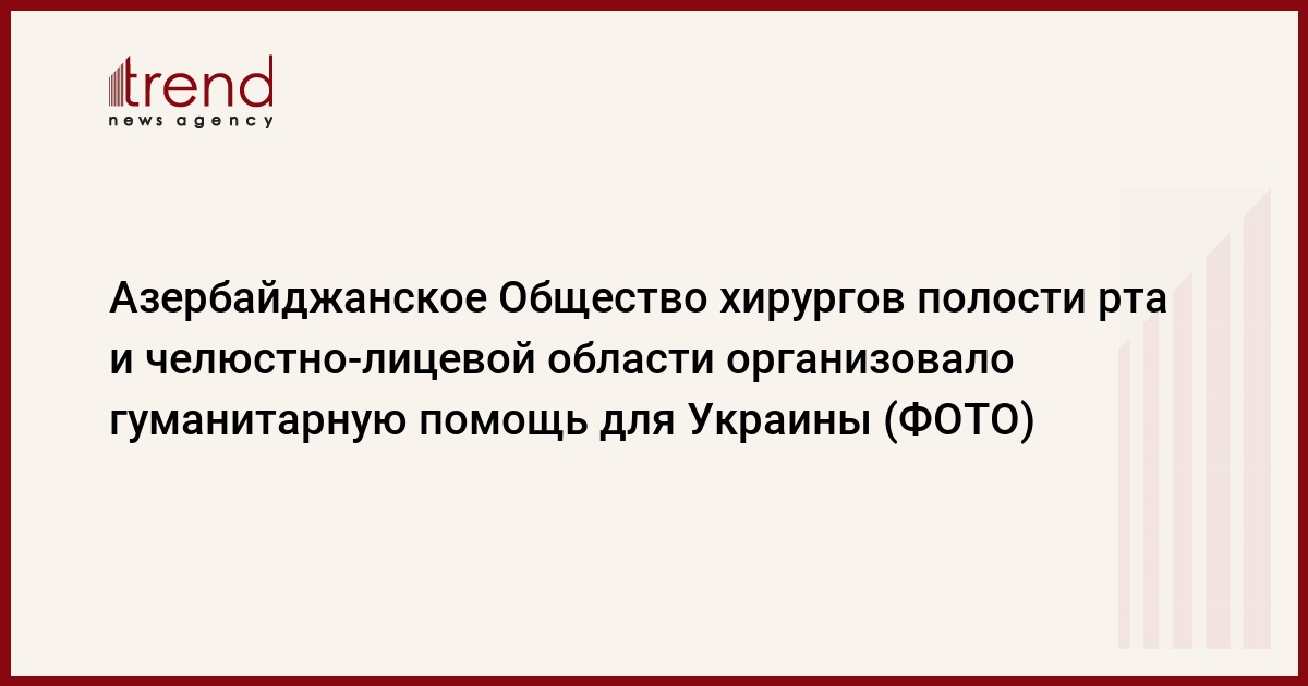 БАКУ /Trend/ - Азербайджанское Общество хирургов полости рта и челюстно-лицевой области (AzOMFS) в лице его активных членов, имея богатый опыт оказания квалифицированной медицинской помощи во время первой и второй Карабахской войн, следуя гуманным и коллегиальным принципам, приняло решение, за счет членских взносов Общества, в знак поддержки коллег, украинских челюстно-лицевых хирургов, организовало гуманитарную помощь в виде набора хирургических инструментов и деталей для металлоостеосинтеза (титановые реконструктивные, мини пластины и пр.) на сумму более 5000 манатов.