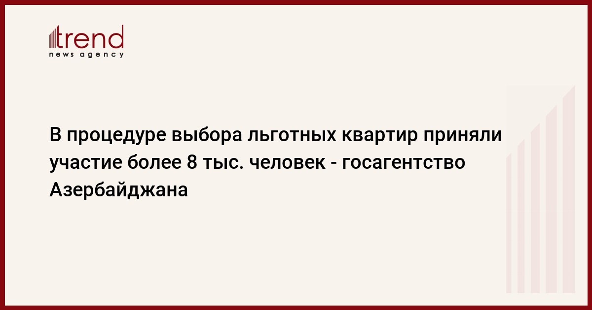 Как передает в среду Trend, в процедуре выбора 442 квартир приняли участие 8 939 человек.