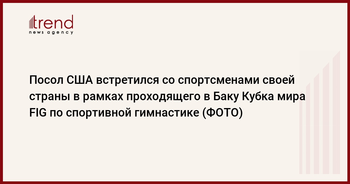 БАКУ /Trend/ - Посол США в Азербайджане Эрл Литценбергер встретился со спортсменами своей страны в рамках проходящего в Национальной арене гимнастики в Баку Кубка мира FIG по мужской и женской спортивной гимнастике, сообщает в субботу Trend.