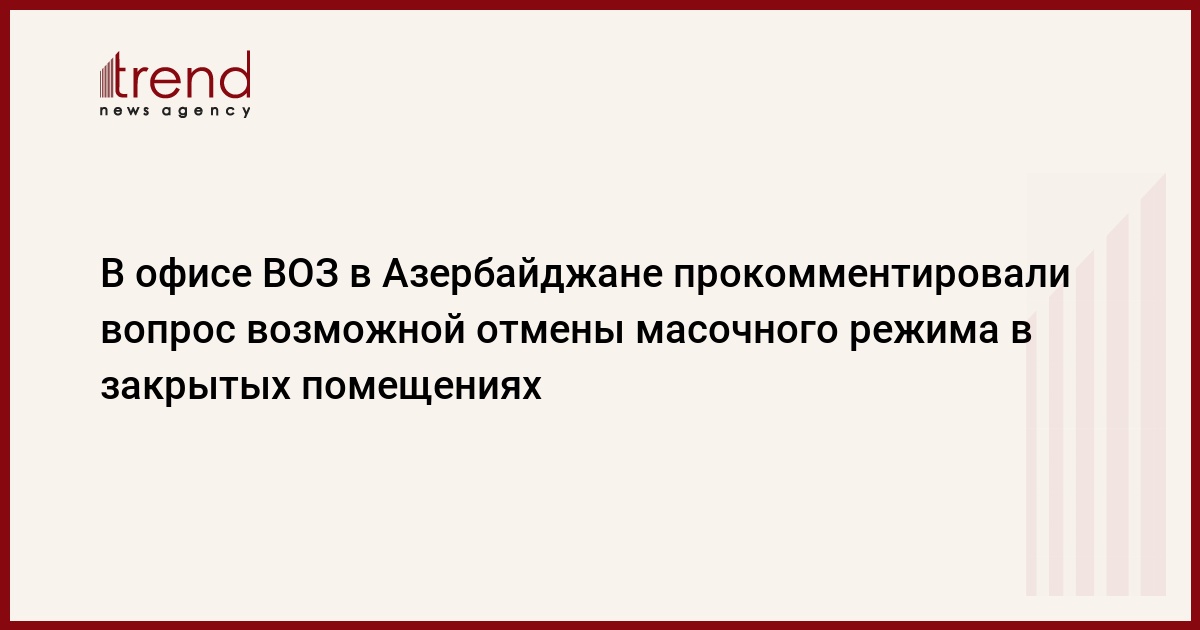 "Решения об использовании масок и других ограничениях принимаются с учетом эпидемиологической ситуации. Ношение масок особенно важно в закрытых помещениях для предотвращения заражения коронавирусом. По этой причине во многих странах все еще действует решение об использовании масок в местах массового скопления людей, таких как общественный транспорт. Любое решение об использовании масок в Азербайджане будет приниматься в зависимости от текущей статистики инфицирования", - сказали в представительстве ВОЗ.