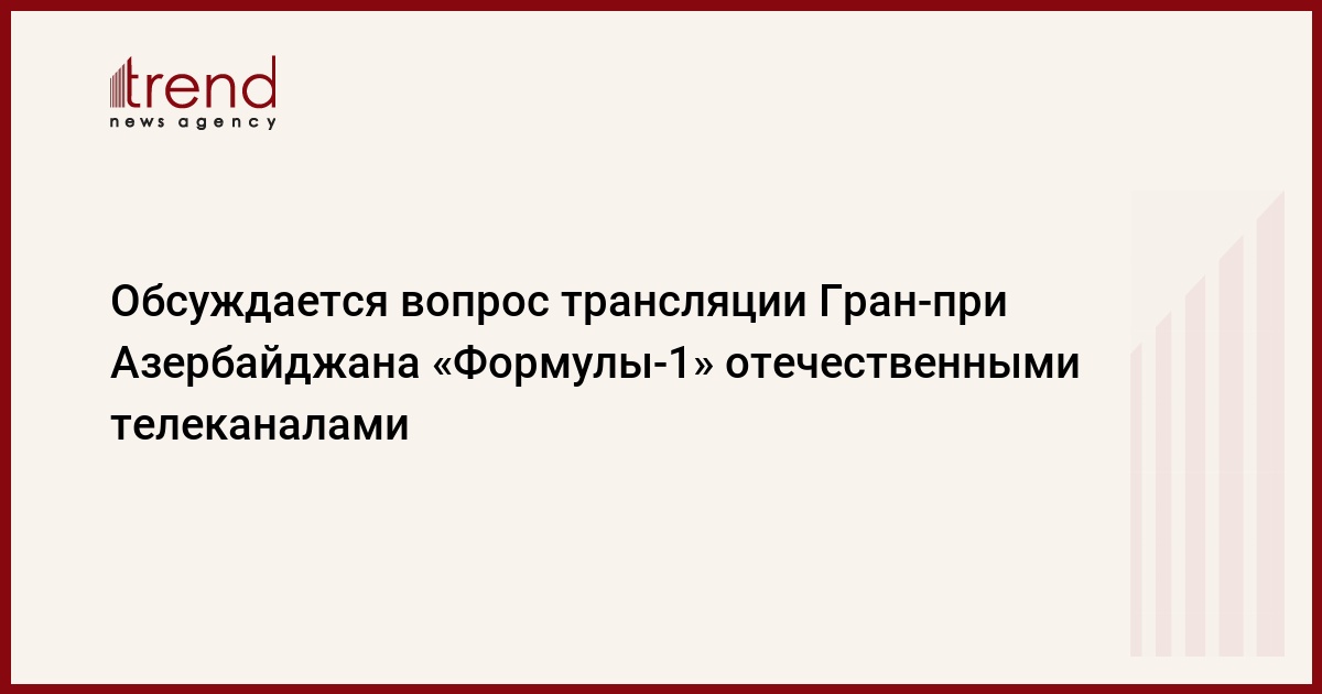 БАКУ /Trend/ - В настоящее время обсуждается вопрос трансляции Гран-при Азербайджана «Формулы-1» азербайджанскими телеканалами. По итогам обсуждений будет сделано заявление.
