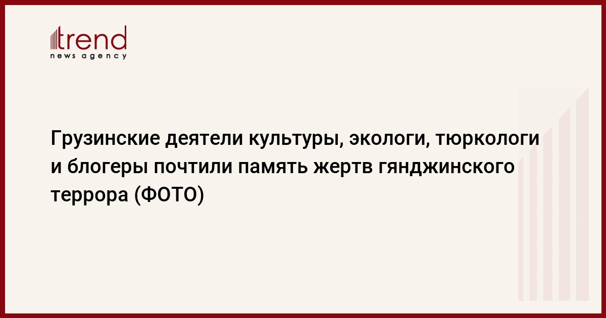 БАКУ /Trend/ - Делегация грузинских деятелей культуры, экологов, тюркологов и блогеров почтила память наших соотечественников, погибших в результате обстрела из запрещенных видов оружия армянской армией мирных жителей в городе Гянджа 11 и 17 октября.