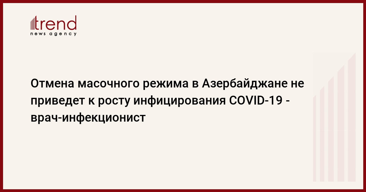 БАКУ /Trend/ - Отмена масочного режима в Азербайджане не приведет к росту числа инфицированных коронавирусом.