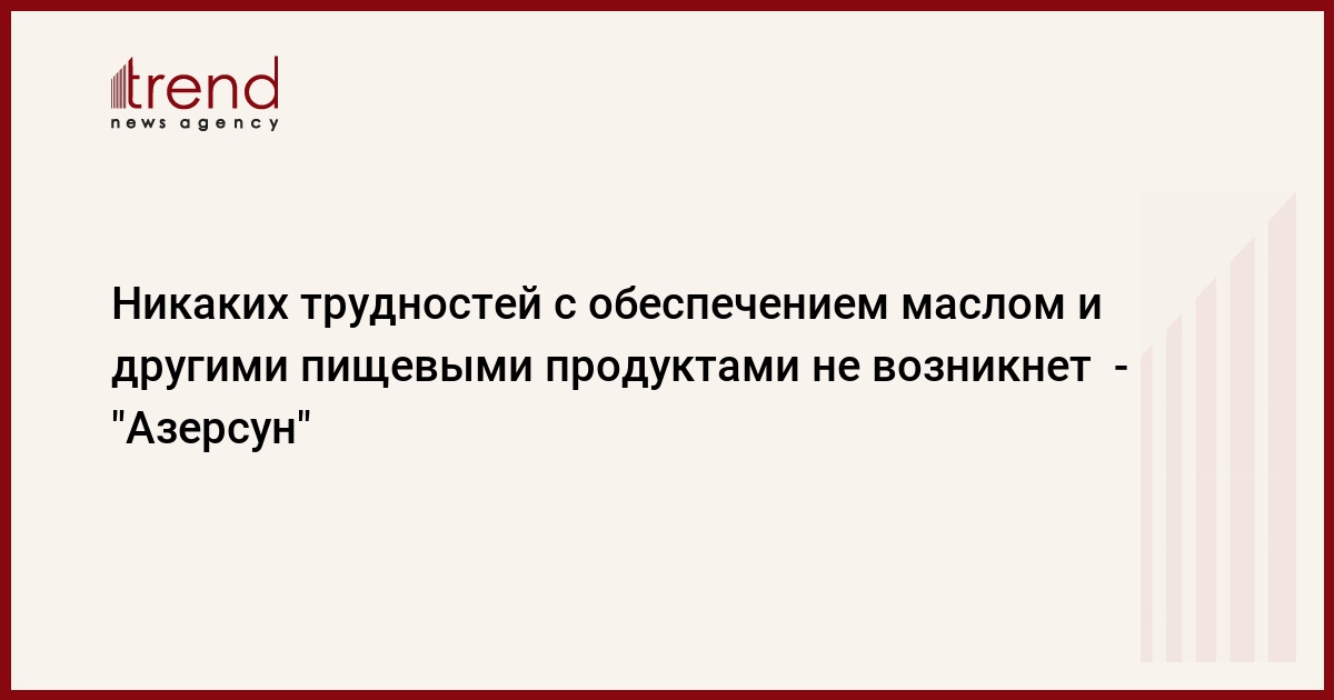 "У ООО "Sun Food" достаточно запасов на складах в Хырдалане и других районах. Никаких трудностей с обеспечением маслом и другими продуктами питания в стране не возникнет. Благодарим всех, кто выразил поддержку в связи с произошедшим. Соответствующие государственные структуры проводят расследование, общественность будет проинформирована о результатах", - говорится в публикации.