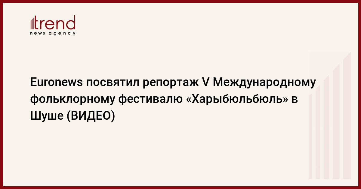 БАКУ /Trend/ - Ведущий европейский телеканал Euronews посвятил свой репортаж прошедшему в городе Шуша V Международному фольклорному фестивалю «Харыбюльбюль», передает во вторник Trend со ссылкой на сайт Euronews.