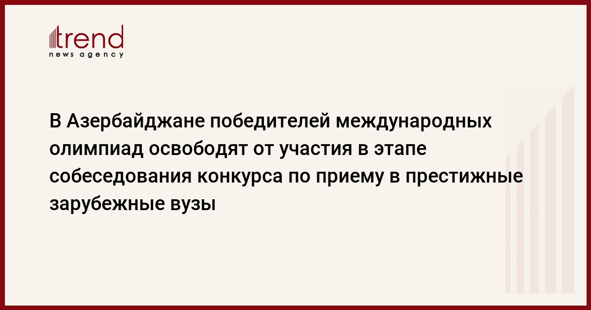 БАКУ /Trend/ - В рамках "Государственной программы по обучению молодежи в престижных высших учебных заведениях зарубежных стран на 2022-2026 годы" по ступени бакалавра будет отдаваться предпочтение победителям международных олимпиад.