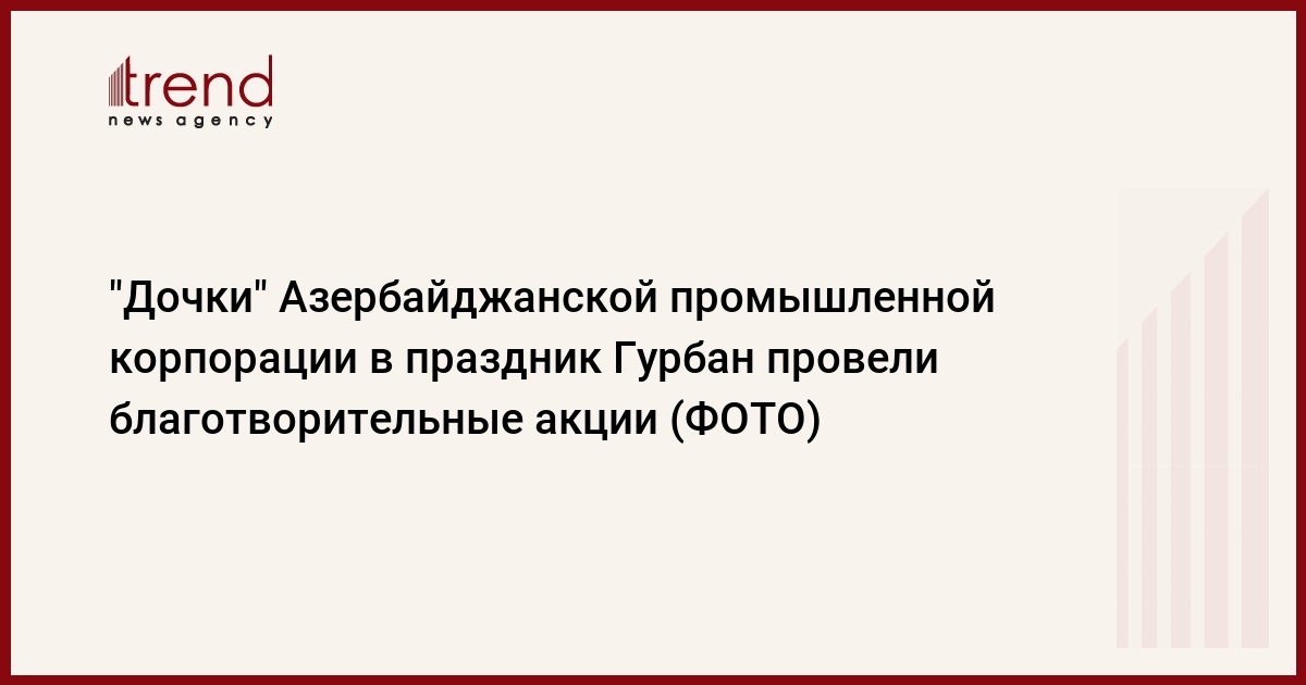 БАКУ /Trend/ - Дочерние компании ОАО "Азербайджанская промышленная корпорация" - ООО "Азералюминий", ООО "Азерпамбыг", ООО "Азерипек", ООО ASK Şüşə и ООО АСК Security по случаю священного праздника Гурбан, который считается символом духовного единства мусульманского мира, провели благотворительные мероприятия.