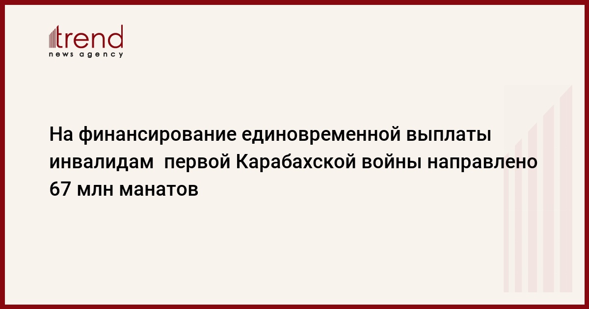 БАКУ /Trend/ - На счета до 11 тысяч инвалидов первой Карабахской войны перечислена единовременная выплата, на финансирование которой направлено 67 миллионов манатов.