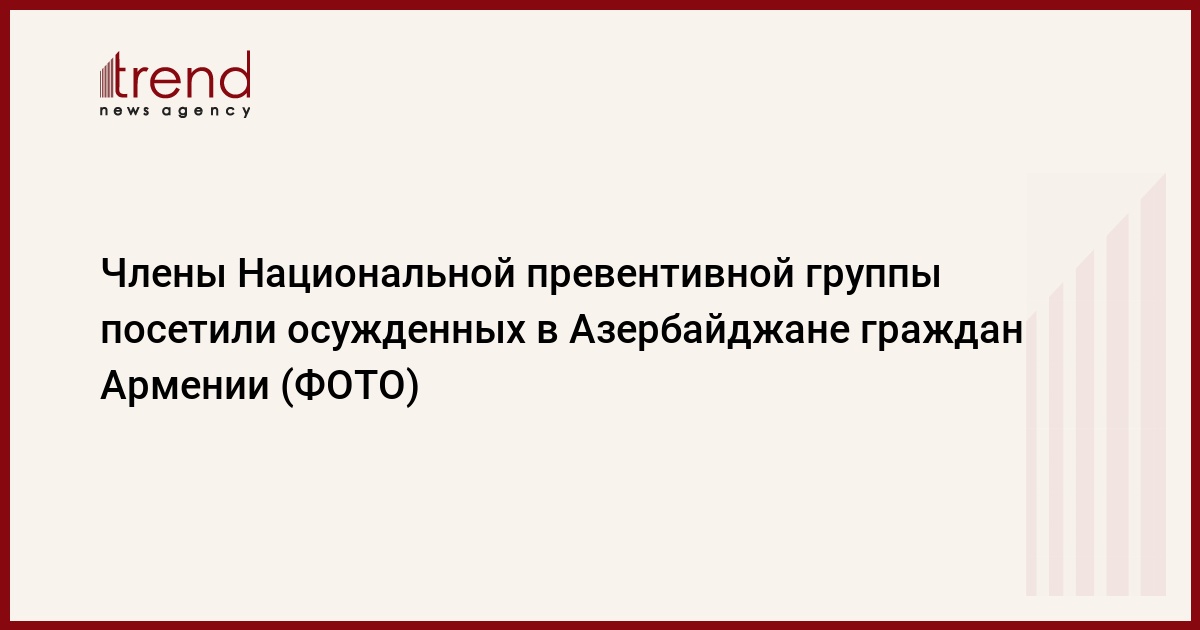 В ходе посещения, в котором также принял участие врач-член НПГ, были приняты также граждане Армении, осужденные за преступления, совершенные на освобожденных от оккупации территориях Азербайджана после прекращения военных операций в соответствии с трехсторонним заявлением, подписанным главами Азербайджана, России и Армении 10 ноября 2020 года.