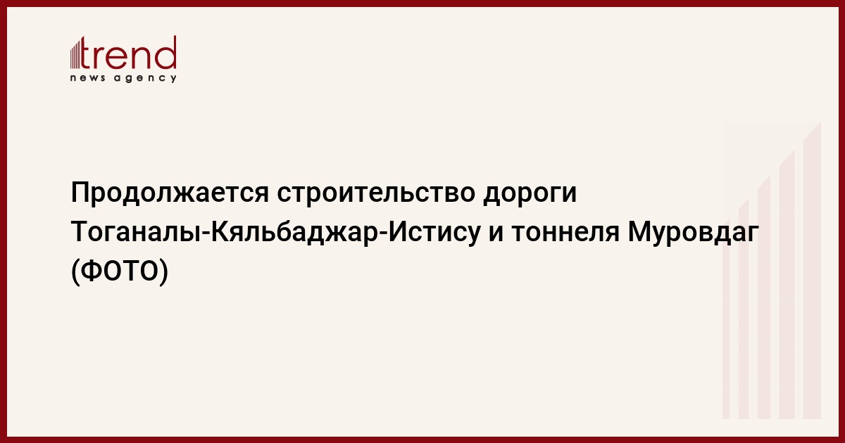 На 6,0-13,5 км и 25,0-33,4 км дороги Тоганалы-Кяльбаджар завершена расчистка территории, осуществляется подготовка к закладке фундамента, завершены работы по установке 43 прямоугольных и круглых труб, продолжаются работы по установке 16 прямоугольных и круглых труб.