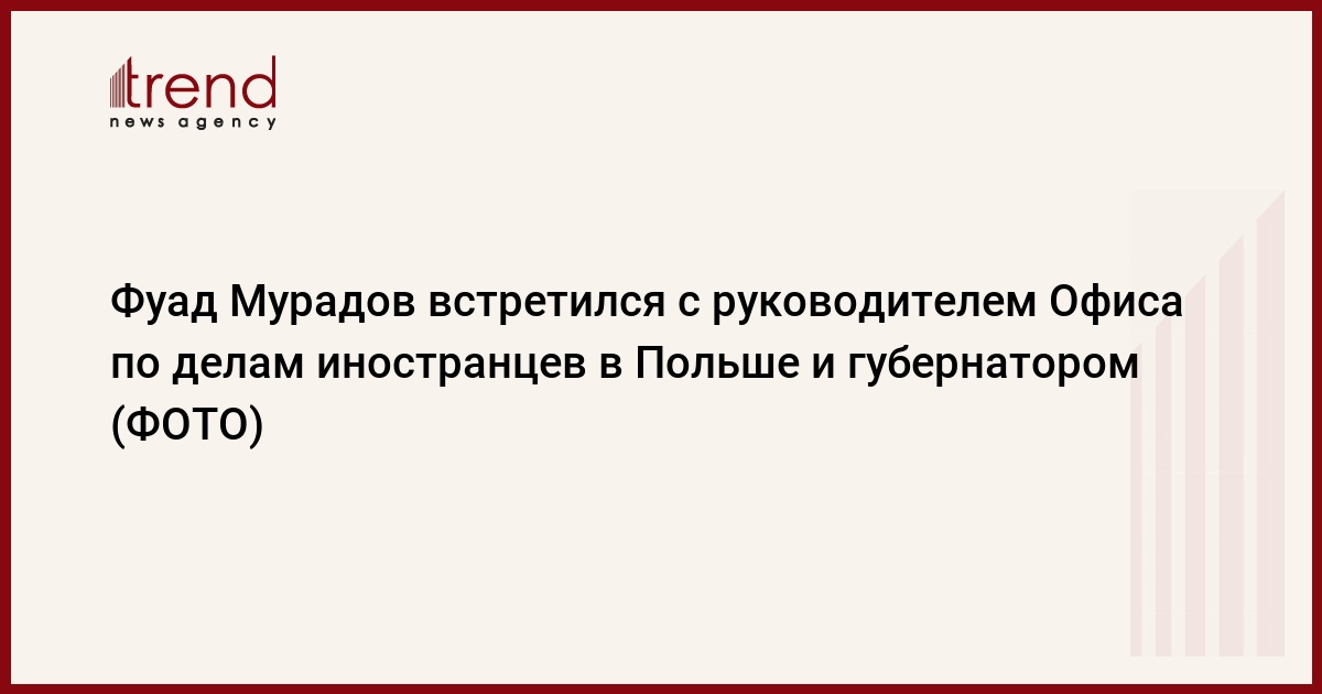 БАКУ /Trend/ - Председатель Государственного комитета по работе с диаспорой Азербайджана Фуад Мурадов в рамках визита в Польшу встретился с руководителем Офиса по делам иностранцев в этой стране Ярославом Шайнером, передает в воскресенье Trend со ссылкой на Госкомитет.