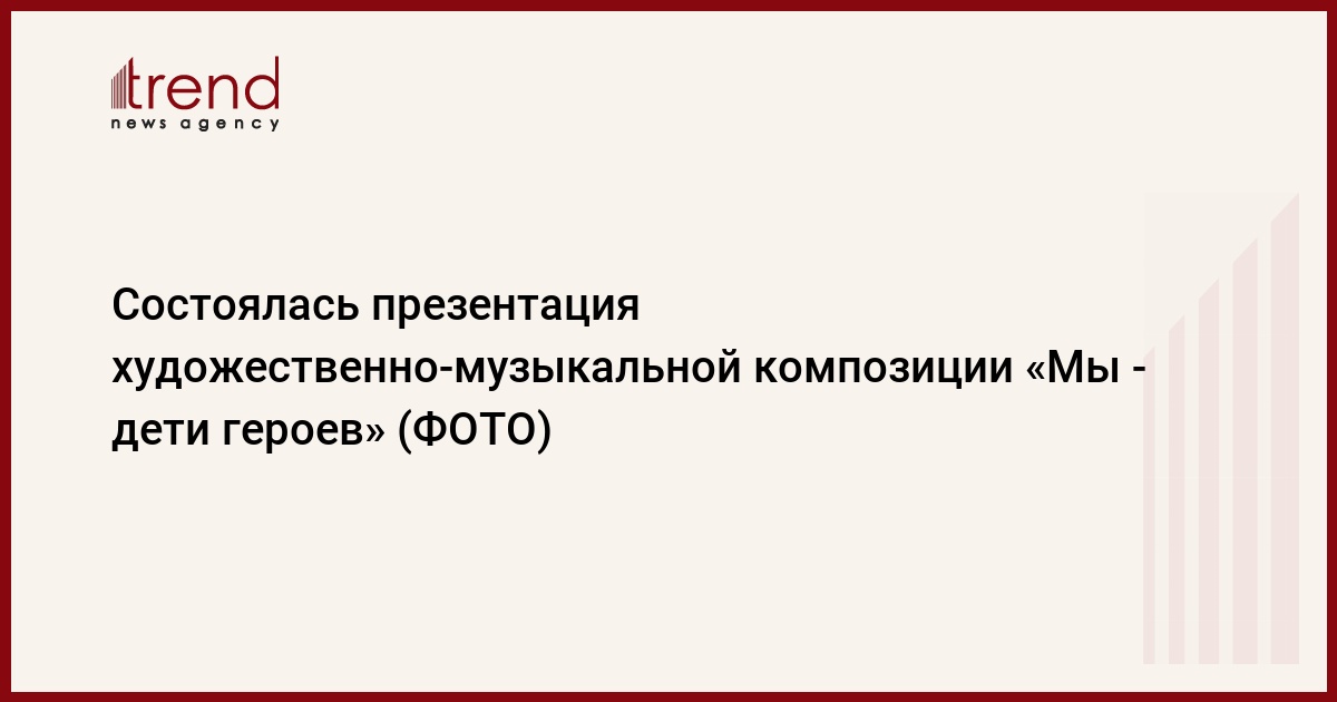 БАКУ /Trend/ - 7 ноября в рамках совместной деятельности компаний «PASHA Life» и «PASHA Holding» и при поддержке Общественного объединения поддержки семей шехидов «Зафар» состоялась презентация художественной композиции, посвященной памяти шехидов, под названием «Мы - дети героев».