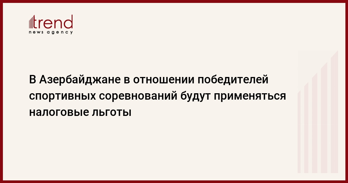 БАКУ /Trend/ - В Азербайджане в отношении победителей спортивных соревнований будут применяться налоговые льготы.