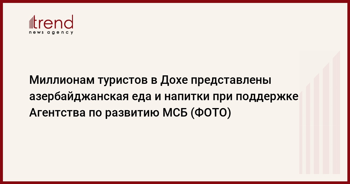 БАКУ /Trend/ - При поддержке Агентства по развитию малого и среднего бизнеса (МСБ) мини-трейлер с азербайджанскими закусками, едой и напитками представлен в Дохе миллионам туристов со всего мира во время Чемпионата мира по футболу.
