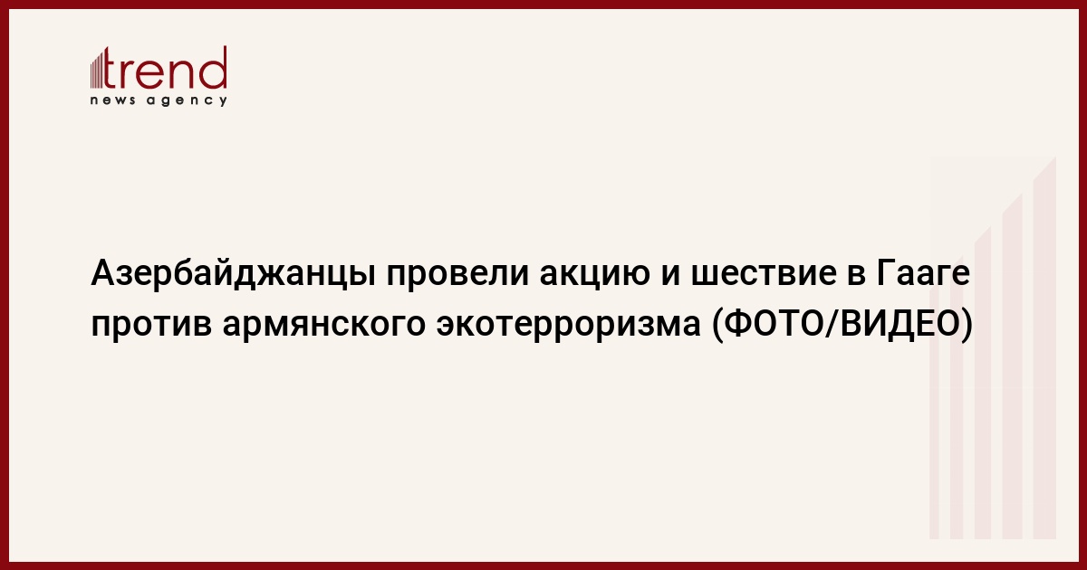 БАКУ /Trend/ - Азербайджанцы провели акцию и шествие в Гааге против армянского экотерроризма и незаконной эксплуатации природных ресурсов на территориях Азербайджана, где временно дислоцируется российский миротворческий контингент.
