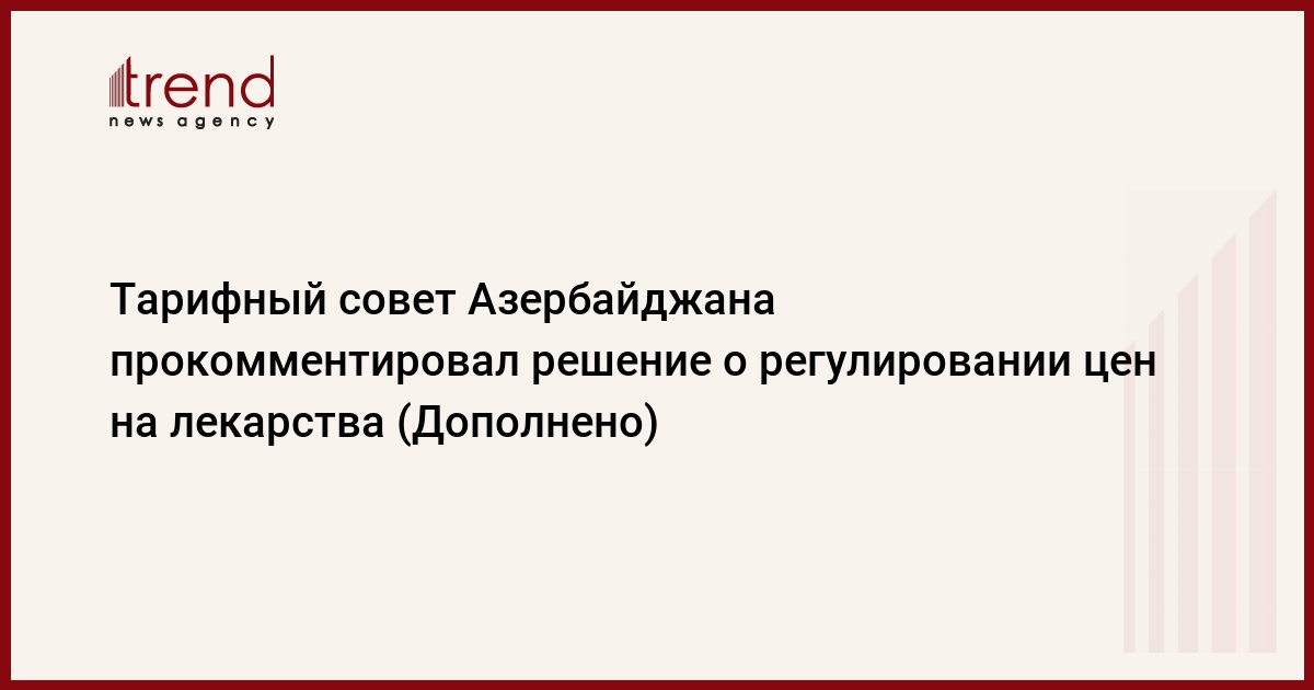 БАКУ /Trend/ - 28 декабря состоялось очередное заседание Тарифного (ценового) совета Азербайджана, были приняты решения о ценах на лекарственные средства.