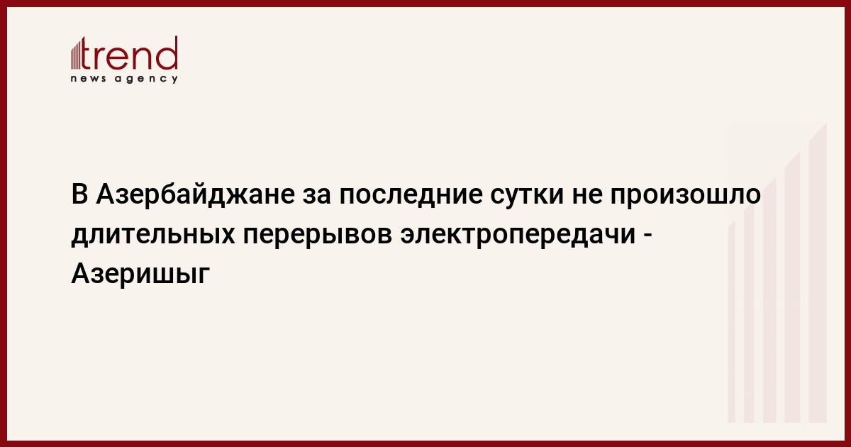 БАКУ /Trend/ - За последние 24 часа в системе электроснабжения Азербайджана не произошло длительных перерывов электропередачи или крупномасштабных аварий.