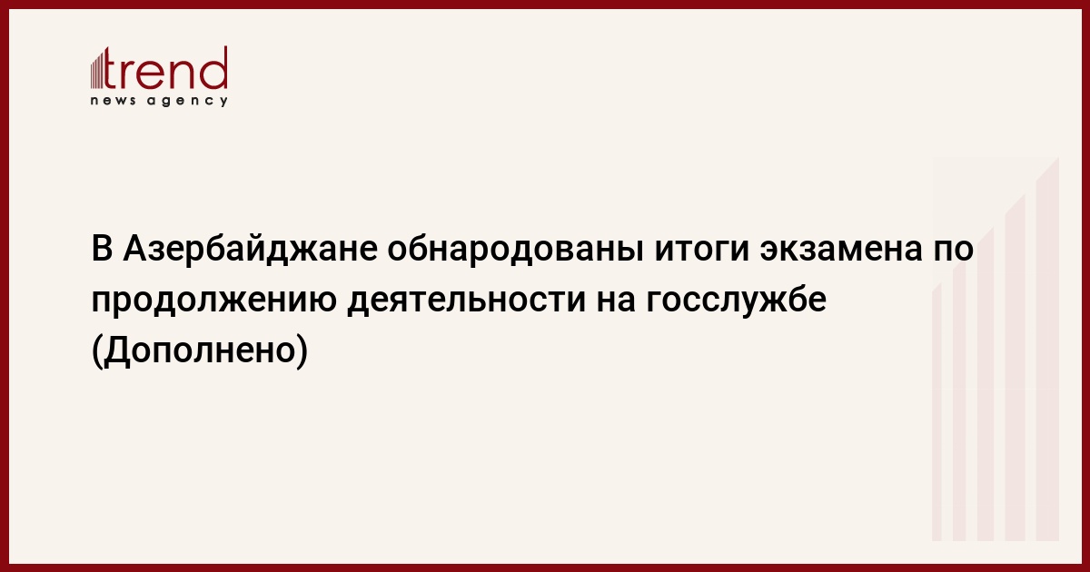 БАКУ /Trend/ - Государственный экзаменационный центр (ГЭЦ) обнародовал результаты тестового экзамена по продолжению деятельности на административных должностях государственной службы (группа ВВ), проведенного 15 января.
