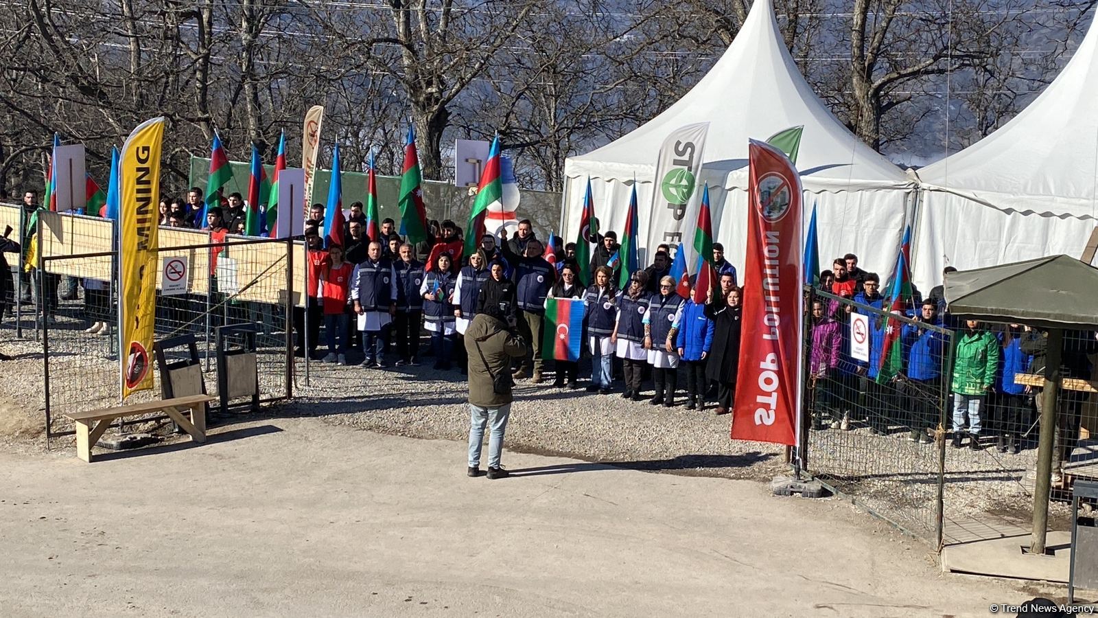 ШУША / Trend/ - Участники акции протеста на Лачинской дороге почтили память шехидов трагедии 20 Января минутой молчания.