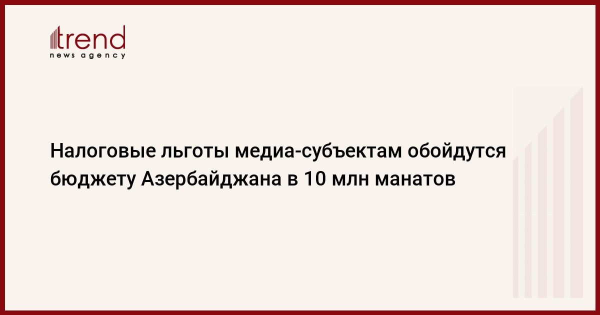 БАКУ /Trend/ - Налоговые льготы медиа-субъектам Азербайджана обойдутся бюджету в 10 млн манатов.
