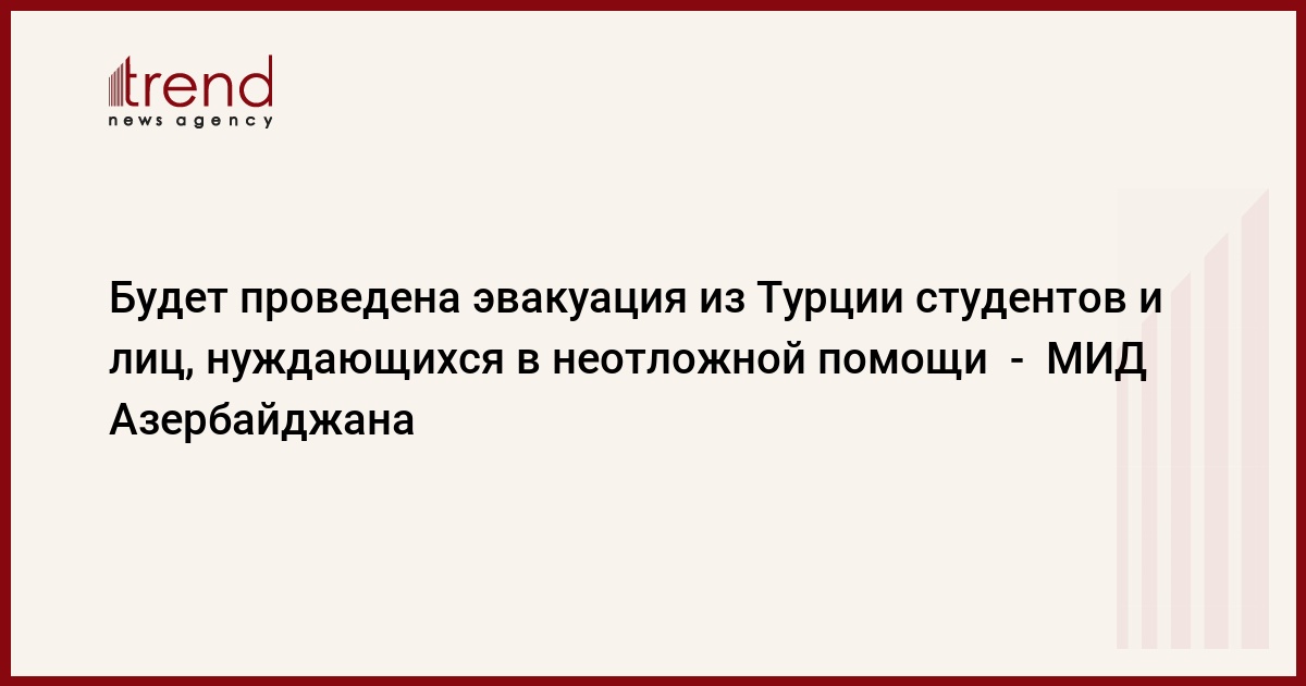 БАКУ /Trend/ - Будет проведена эвакуация студентов, обучающихся в Турции, и лиц, нуждающихся в неотложной помощи.