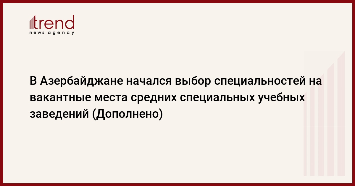 БАКУ /Trend/ - Государственный экзаменационный центр (ГЭЦ) объявляет прием студентов на базе общего (9-летнего) среднего образования в средние специальные учебные заведения Азербайджана на 2023-2024 учебный год.