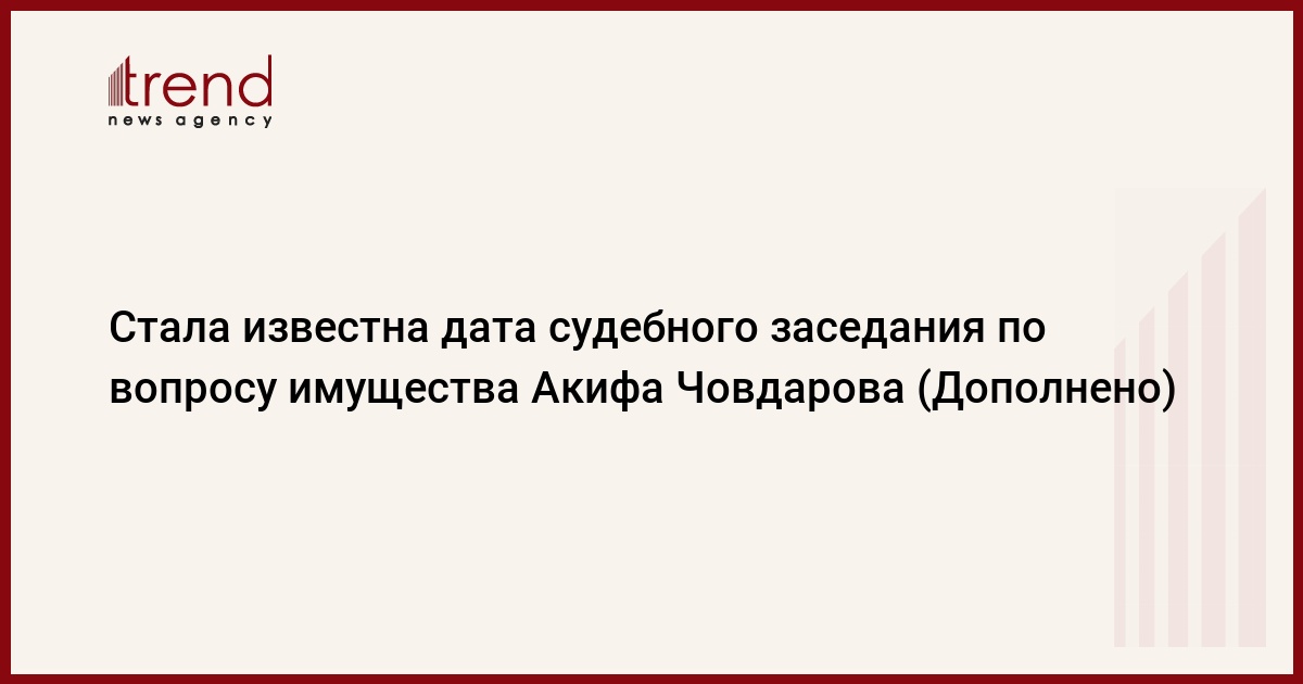 БАКУ /Trend/ - Стала известна дата судебного разбирательства в Верховном суде протеста в отношении решения об освобождении от специальной конфискации имущества по уголовному делу бывшего начальника Главного управления безопасности в энергетической и транспортной сферах упраздненного Министерства национальной безопасности Акифа Човдарова и бывшего сотрудника этого же управления полковника Салима Мамедова.