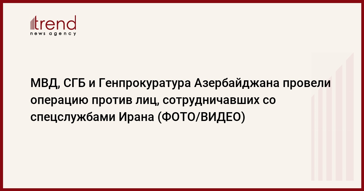 БАКУ /Trend/ - Сотрудниками Министерства внутренних дел, Службы государственной безопасности и Генеральной прокуратуры Азербайджана были проведены совместные специальные комплексные оперативные мероприятия с целью пресечения преступных деяний группы лиц, завербованных иранскими спецслужбами посредством религиозной пропаганды, которые в обмен на финансовую выгоду совершали действия, направленные на дестабилизацию ситуации в нашей стране, передает в четверг Trend со ссылкой на совместное заявление указанных ведомств.
