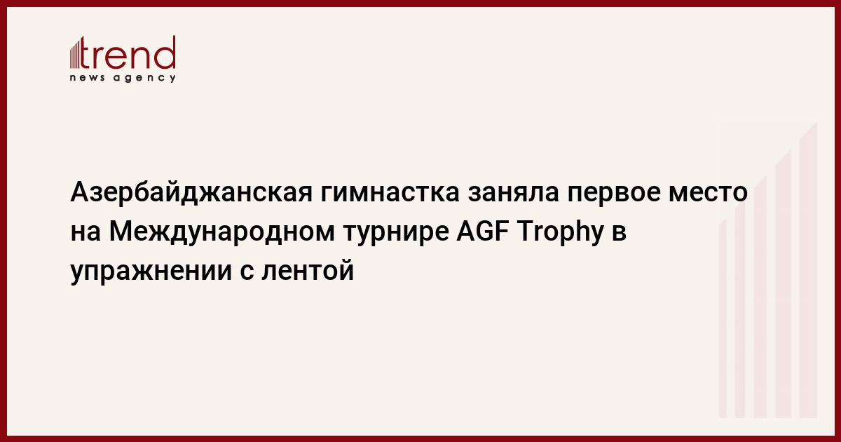 БАКУ /Trend/ - "Золото" Международного турнира по художественной гимнастике AGF Trophy в упражнении с лентой среди сеньорок завоевала азербайджанская грация Зохра Агамирова, сообщает в воскресенье Trend. Ее выступление судьи оценили на 31.400 балла.