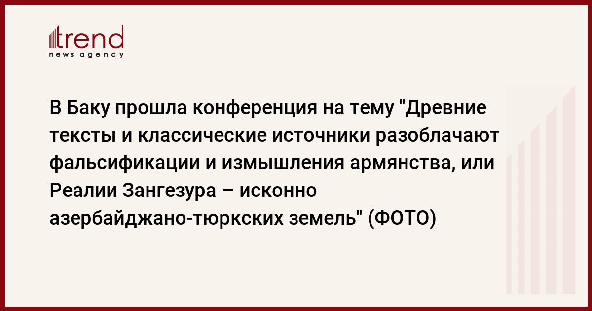 БАКУ /Trend/ - 20 апреля при организации Агентства интеллектуальной собственности Азербайджана прошла конференция на тему "Древние тексты и классические источники разоблачают фальсификации и измышления армянства, или Реалии Зангезура – исконно азербайджано-тюркских земель", организованная в рамках "Года Гейдара Алиева" по случаю Всемирного дня книг и авторского права.