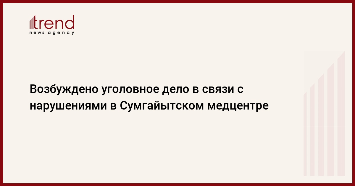 БАКУ /Trend/ - Возбуждено уголовное дело в связи с нарушениями в Сумгайытском медицинском центре.