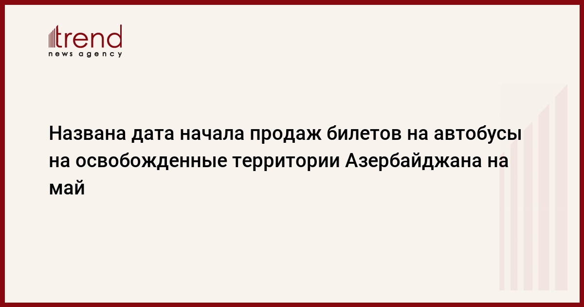 БАКУ /Trend/ - Билеты на май на регулярные автобусные рейсы, организуемые Агентством наземного транспорта Азербайджана при министерстве цифрового развития и транспорта на освобожденные от оккупации территории, поступят в продажу в 15:00 26 апреля 2023 года.