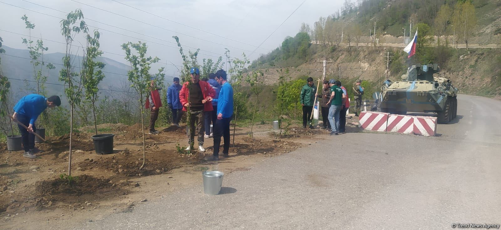 ШУША /Trend/ - Сегодня экоактивисты посадили деревья на месте временно приостановленной акции на дороге Лачин-Ханкенди.