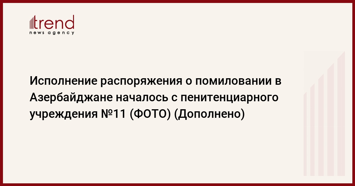 БАКУ /Trend/ - Исполнение распоряжения о помиловании по случаю 100-летнего юбилея общенационального лидера Гейдара Алиева началось с пенитенциарного учреждения №11.