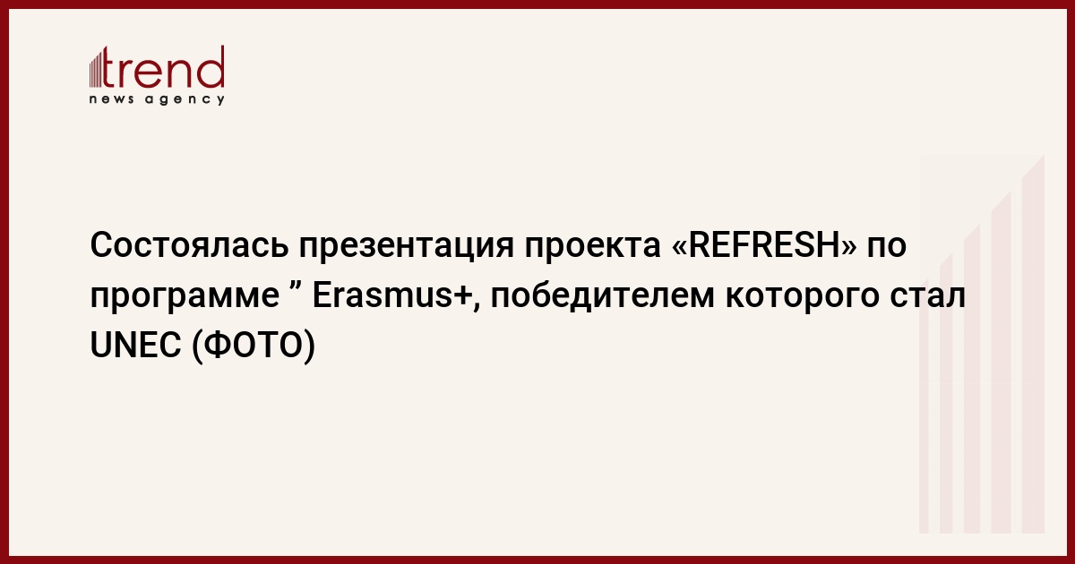 БАКУ/Trend/ - В UNEC состоялась презентация проекта «REFRESH», который стал победителем программы Erasmus+ Европейской Комиссии по виду деятельности KA2 (Повышение квалификации в высшем образовании).