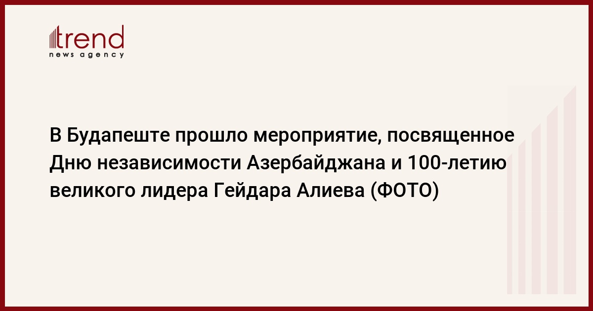 БАКУ /Trend/ - При поддержке Фонда Гейдара Алиева, Международного фонда тюркской культуры и наследия посольство Азербайджана в Венгрии организовало в Будапеште прием по случаю 28 Мая – Дня независимости и 100-летнего юбилея со дня рождения общенационального лидера Гейдара Алиева.