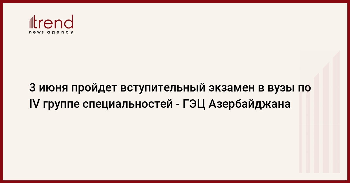 БАКУ /Trend/ - Государственный экзаменационный центр (ГЭЦ) Азербайджана 3 июня проведет вступительный экзамен в высшие учебные заведения по IV группе специальностей, а 4 июня - по I группе. 3 июня также состоится экзамен по информатике для абитуриентов, выбравших подгруппы RK и Rİ по I группе специальностей.