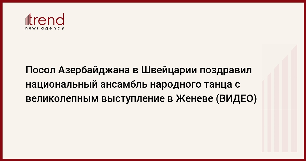 БАКУ /Trend/ - Посол Азербайджана в Швейцарии Фуад Искендеров поздравил азербайджанский ансамбль народного танца IRS с отличным выступлением в Женеве, сообщает Trend.
