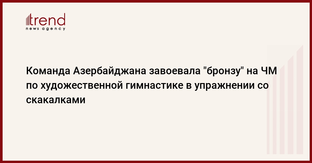 БАКУ /Trend/ - Групповая команда Азербайджана завоевала "бронзу" на 2-ом чемпионате мира по художественной гимнастике среди юниорок в упражнении с пятью скакалкам, сообщает в воскресенье Trend.