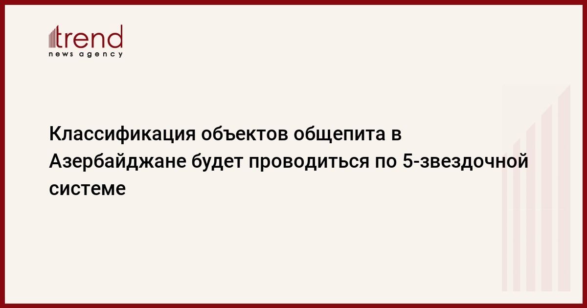БАКУ /Trend/ - Классификация объектов общественного питания в Азербайджане будет проводиться по 5-звездочной системе, как и в гостиницах.