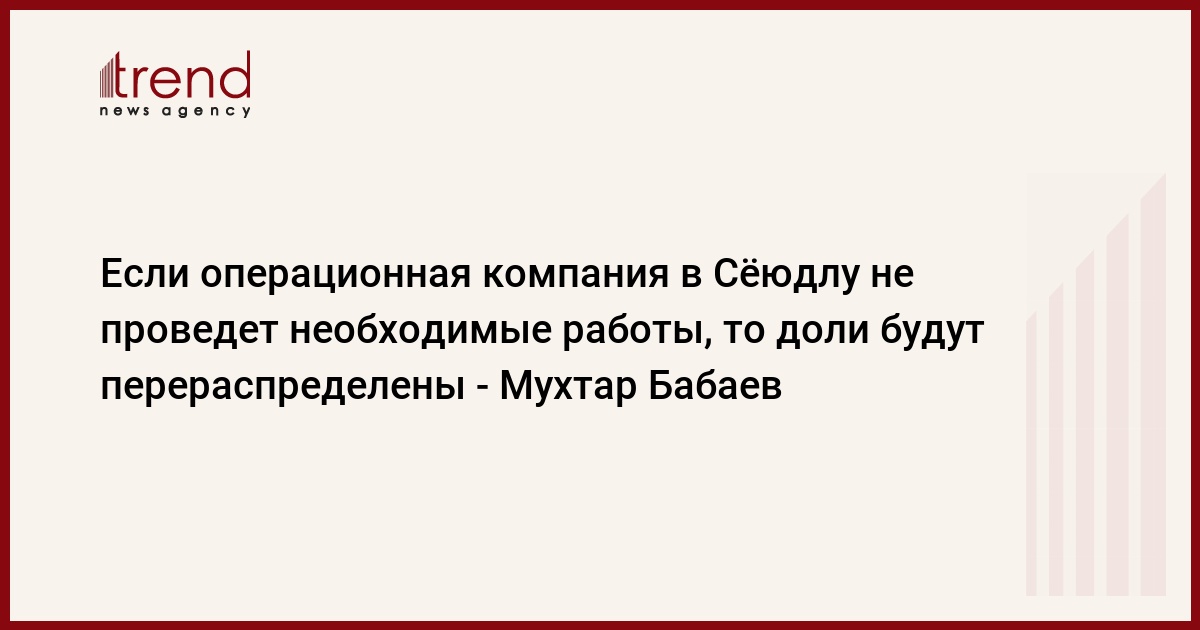 БАКУ /Trend/ - Если операционная компания не проведет необходимые работы в селе Сёюдлю Гедабейского района Азербайджана, будут предприняты более жесткие шаги в отношении распределения долей.