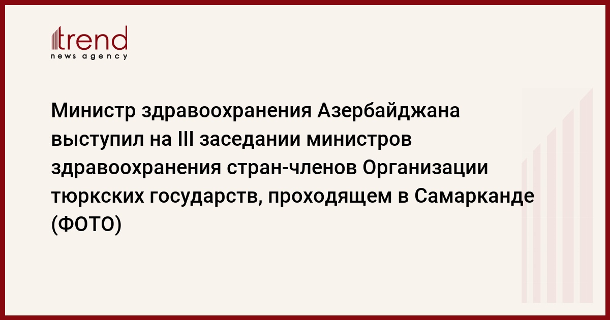 БАКУ/Trend/ -16 августа в городе Самарканд Республики Узбекистан начали свою работу III заседание министров здравоохранения стран-членов Организации тюркских государств (ОТГ) и Всемирный тюркский медицинский конгресс.