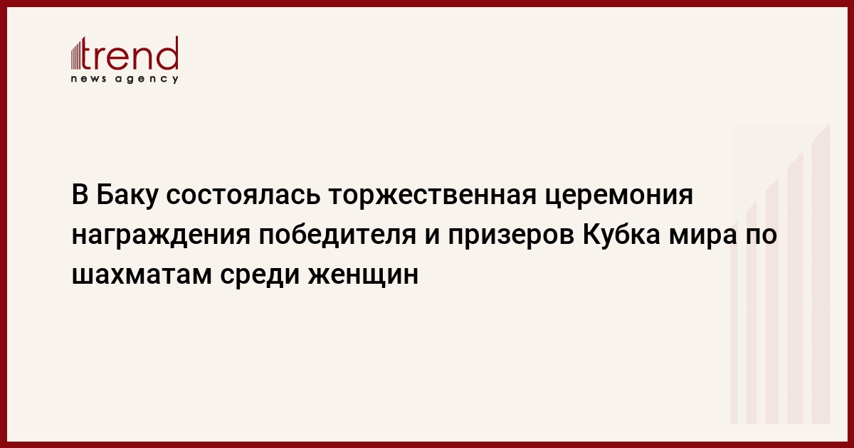 БАКУ /Trend/ - В Баку состоялась торжественная церемония награждения победителя и призеров Кубка мира по шахматам среди женщин, сообщает в понедельник Trend.